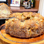 - Poke holes through out cake using a skewer, toothpick or fork. Slowly pour the topping all over the hot cake in bundt pan.