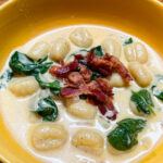 - Add in the gnocchi & cook for 3-5 minutes until they start floating on top of the broth.