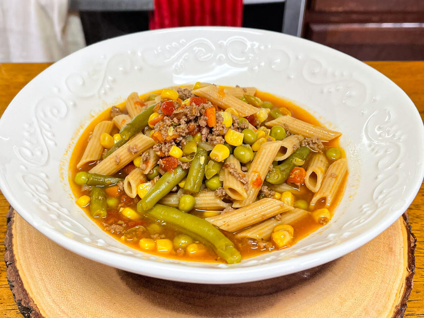 A Vegetable Hamburger Soup with a Secret Easy Ingredient to keep you from chopping.