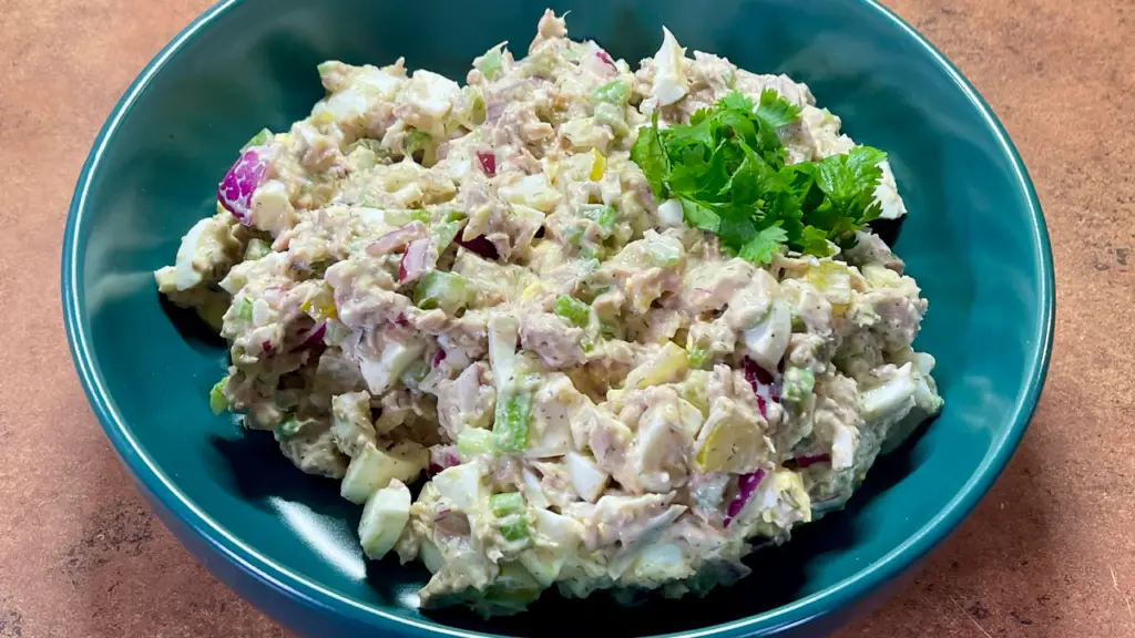 - Stir all ingredients together until well combined. Chill in refrigerator to meld all flavors together.Serve as a sandwich, on lettuce, with crackers, or anyway you like. Enjoy.