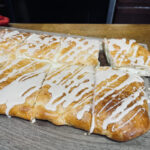 - Drizzle glaze all over the cream cheese Danish. Once cooled completely cut into pieces and enjoy.