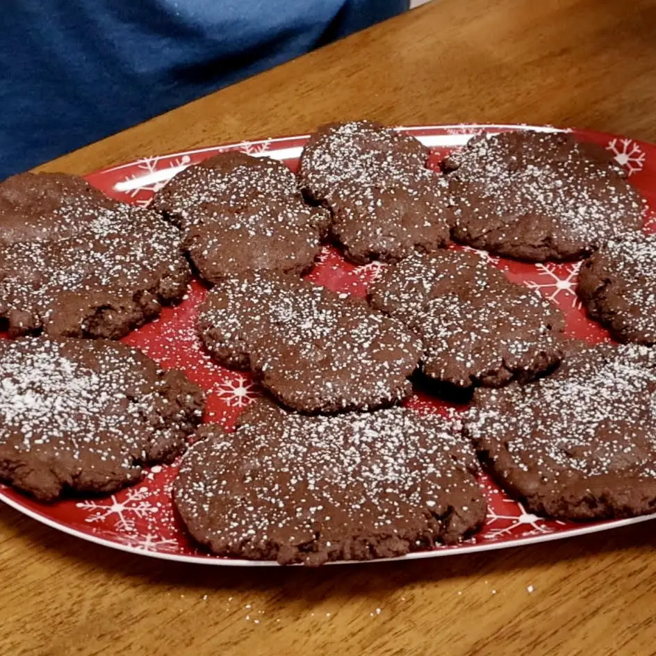 - Sift in flour, cocoa powder, baking soda, and salt. Add in chocolate chips. Fold all together until well mixed and a firm dough forms.