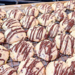 - Scoop out cookie dough using a 1 1/2 inch cookie scoop and place on prepared sheet pans 2 inches apart. Bake for 8-11 minutes until golden brown on the edges of cookies.