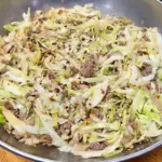 - Stir in shredded cabbage. Sautee until slightly wilted about 5 minutes.