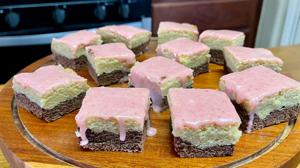 - Dollop the vanilla dough on top of the chocolate layer and press evenly.