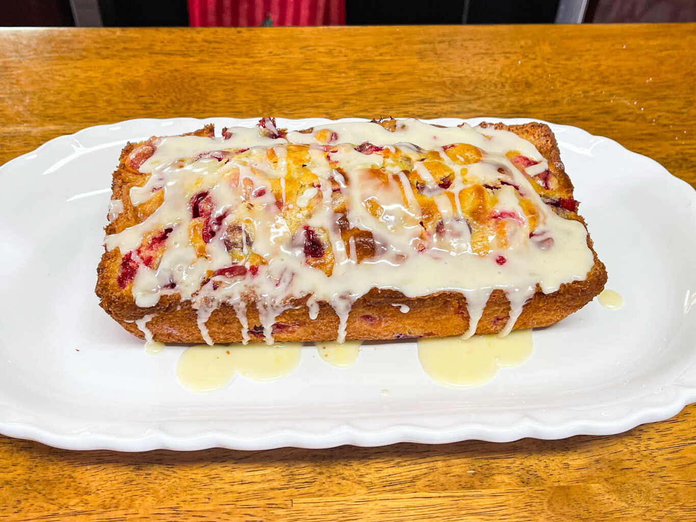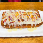 In a medium bowl whisk powdered sugar to remove lumps. Whisk in 2 TBS orange juice until it forms a drizzle.NOTE: if too thin add more powdered sugar. If too thick add milk to thin it out. Drizzle glaze over cooled orange cranberry bread. Slice & Enjoy.